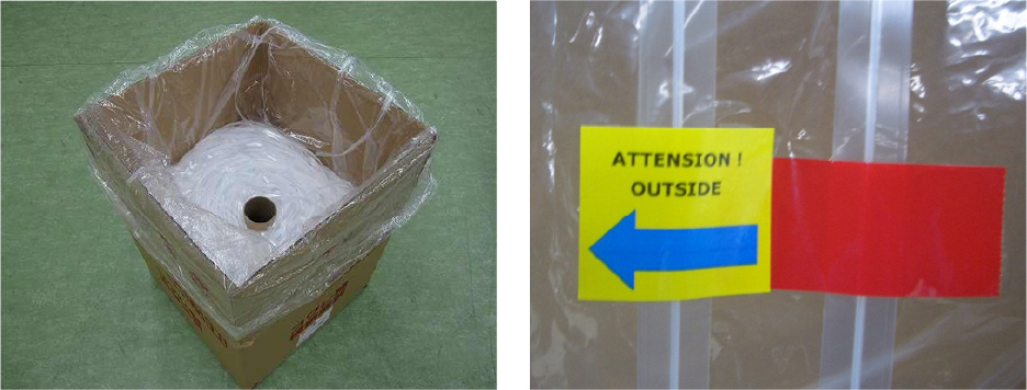 Zipper has direcion of outside (consumer side) and inside (product side), and our zippers are designed to be easy to open from outside nwhile maintaining sufficient strength when openning from inside. When inserting zipper into bag making process, it is important to correctly identify outside/ inside.